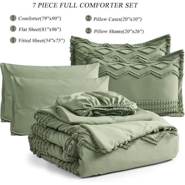 7-Piece Sage Green Full Comforter Set, All Season Soft Microfiber Complete Bedding Set