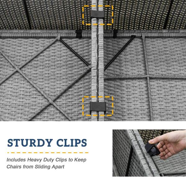 7-Piece Wicker Outdoor Patio Conversation Seating Sofa Set with Coffee Table, Dark Blue Cushions