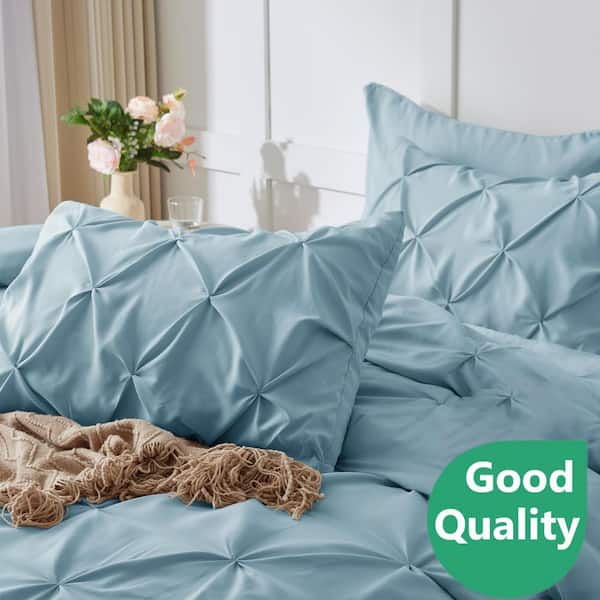 7-Pieces Light Blue Queen Size Microfiber Comforter Set w/ Comforter, Flat Sheet, Fitted Sheet and Pillowcases and Shams