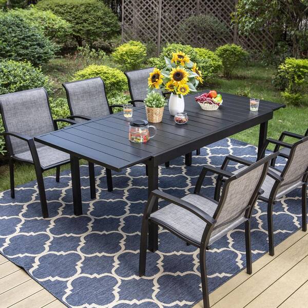 7-Pieces Metal Outdoor Patio Dining Set with 6 Aluminum Textilene Dining Chairs and Extendable Table