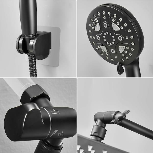 7-Spray Wall Mount Handheld Shower Head 1.8 GPM with Shower Head in Matte Black
