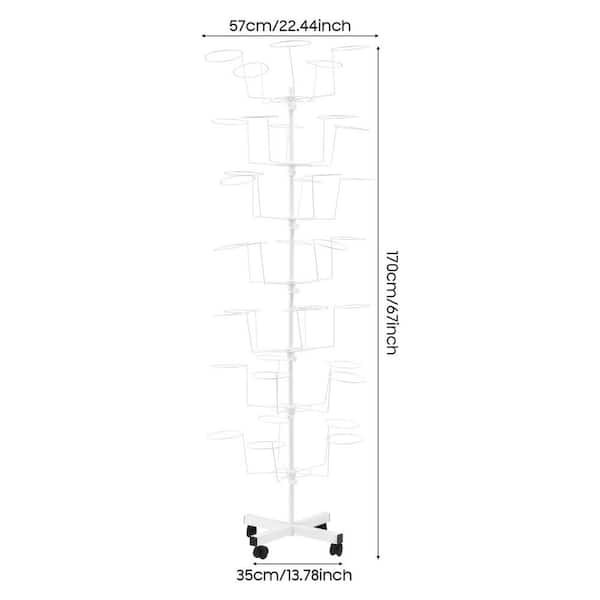 7-Tiers 35-Hats Adjustable Hat White Metal Storage Rack Display Stand with 4-Wheels for Retail Store