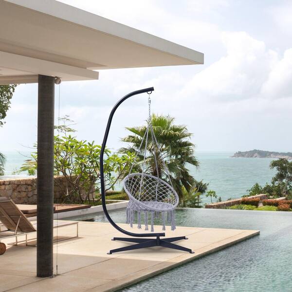 7 ft. Metal Hanging Porch Swing Hammock Stand in Black