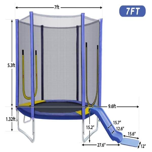 7 ft. Outdoor Round Recreational Trampoline for Kids with Safety Enclosure Net, Slide and Ladder, Easy Assembly