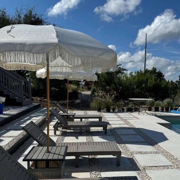 7 ft. Steel Tilt Beach Umbrella in Cream Grid with Vintage Tassel