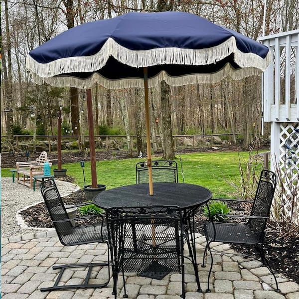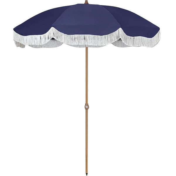 7 ft. Steel Tilt Beach Umbrella in Navy with Vintage Tassel