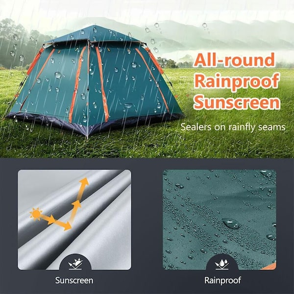 7 ft. x 7 ft. Green Muti-Person Outdoor Automatic Quick Opening Camping Tent with Mesh Windows, Portable Bag& Mat