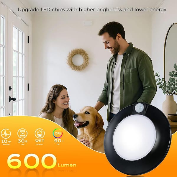 7 in. Black Motion Sensor Integrated LED Ceiling Light Flush Mount (2-Pack)