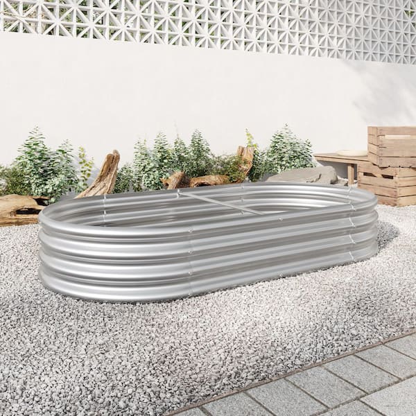 70.86 in W x 35.43 in L Silver Metal Outdoor Raised Planter Bed