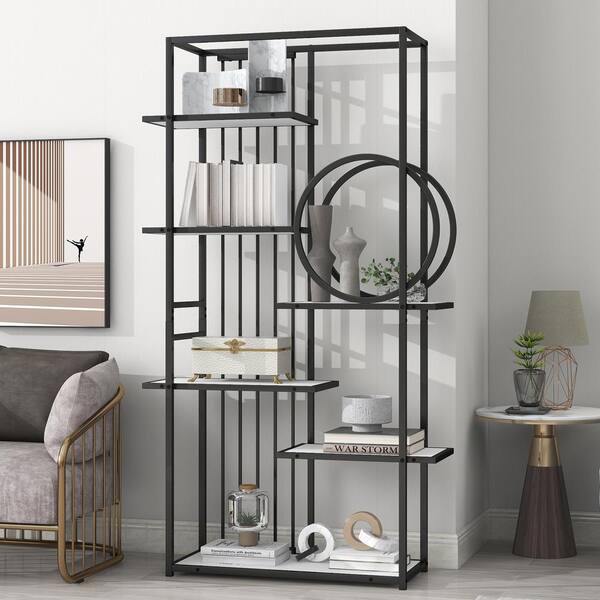70.9 in. Black 5-Tier Standard Bookcase with Metal Frame