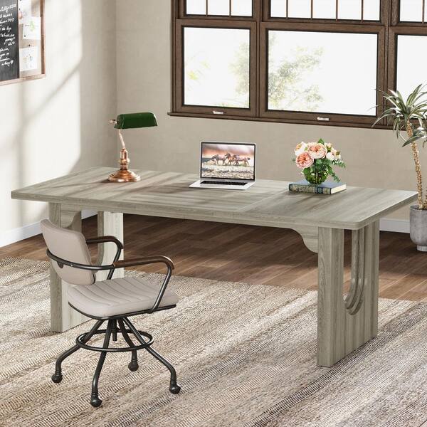 70.9 in. Rectangular Gray Engineered Wood Modern Executive Desk, Large Office Computer Desk for Home Office
