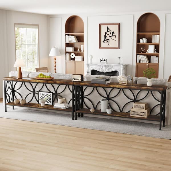 70.9 in. Rustic Brown Rectangle Engineered Wood Sofa Console Table with 2-Tier Storage Shelf for Entryway