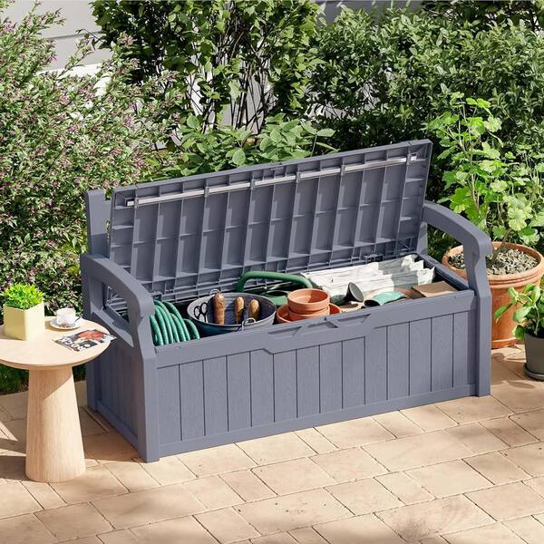70 Gal. Grey Water-Resistant Plastic Outdoor Storage Bench