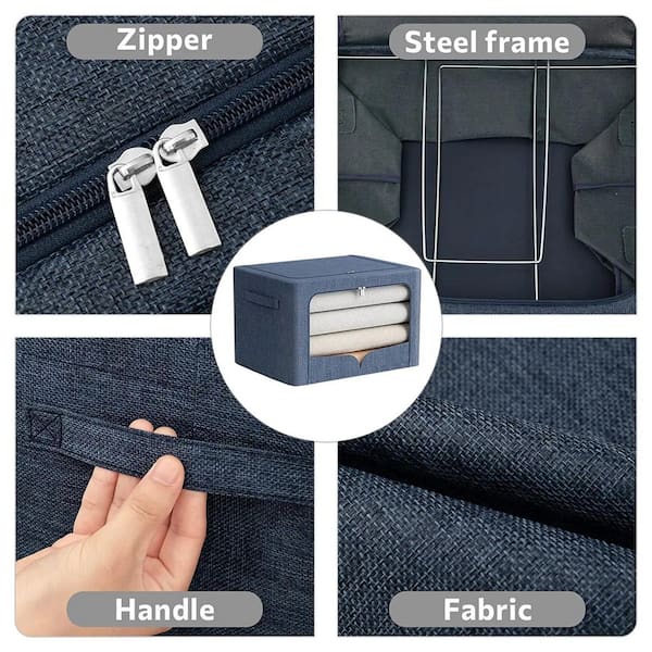 70 Qt. Linen Clothes Storage Bin with Lid in Blue (3-Pack)