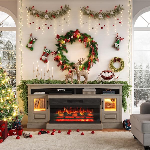70 in. Freestanding Electric Fireplace with 36 inch 3-Sided Electric Fireplace, TV Stand in Brown