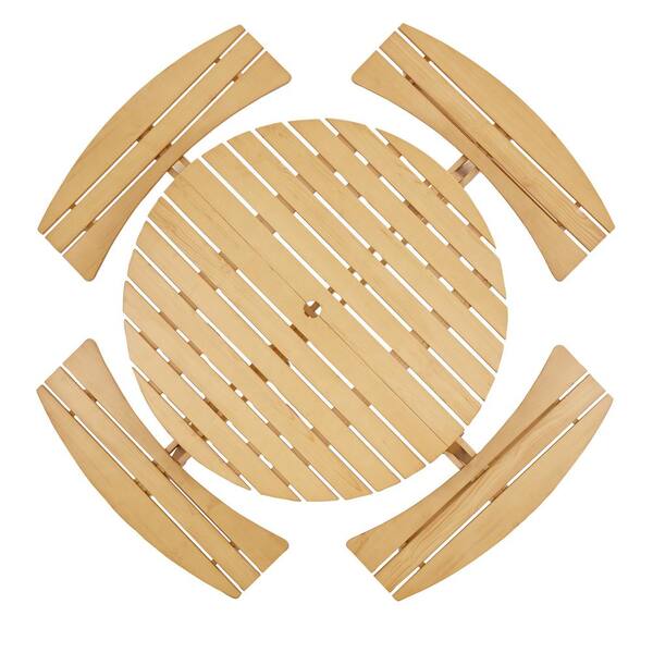 70 in. Outdoor Natural Round Wood Picnic Tables with 4 Built-in Benches and Umbrella Hole for Garden Backyard(8-Person)