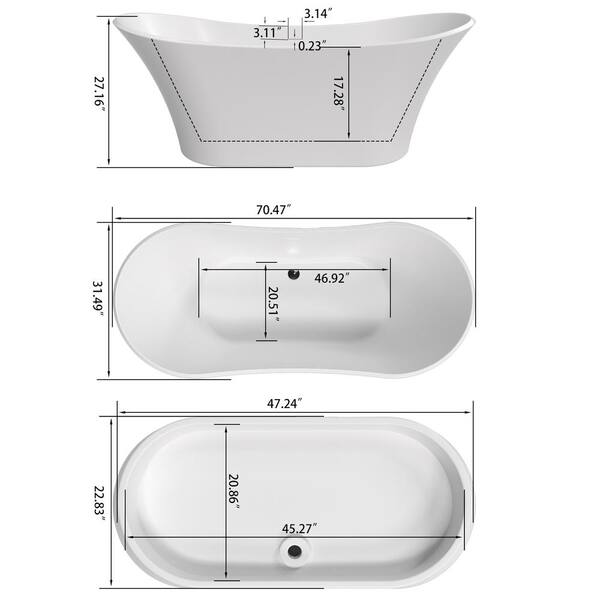 70 in. x 31 in. Soaking Bathtub with Center Drain in White
