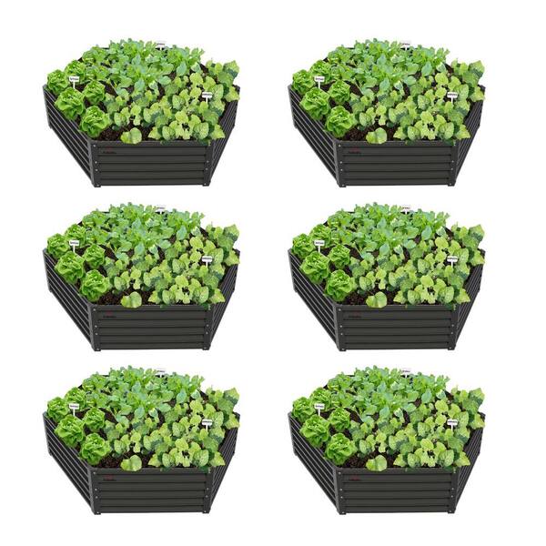 70 in. x 60 in. x 18 in. Gray Metal Hexagon Outdoor Galvanized Raised Garden Beds, Planter Box for Planting (6-Pack)