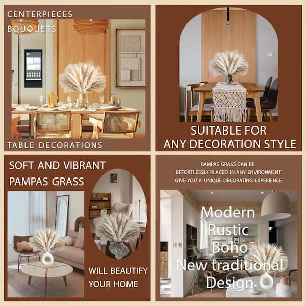 70Pcs Artificial Natural Dried Pampas Grass Boho Home Decor Bouquet, Phragmites Dried Flowers