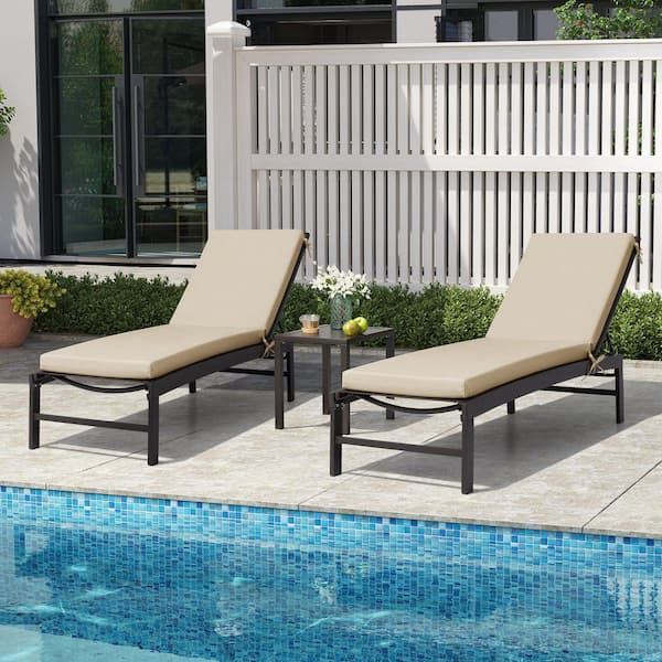 71.5 in. x 21 in. Sunbrella Outdoor Chaise Lounge Cushion in Champagne (Set of 2)