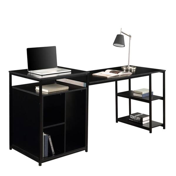71 in. Extra Large Black Computer Desk with Storage Shelf, Home Office Desk with Printer Stand Cabinet Bookcase Combo