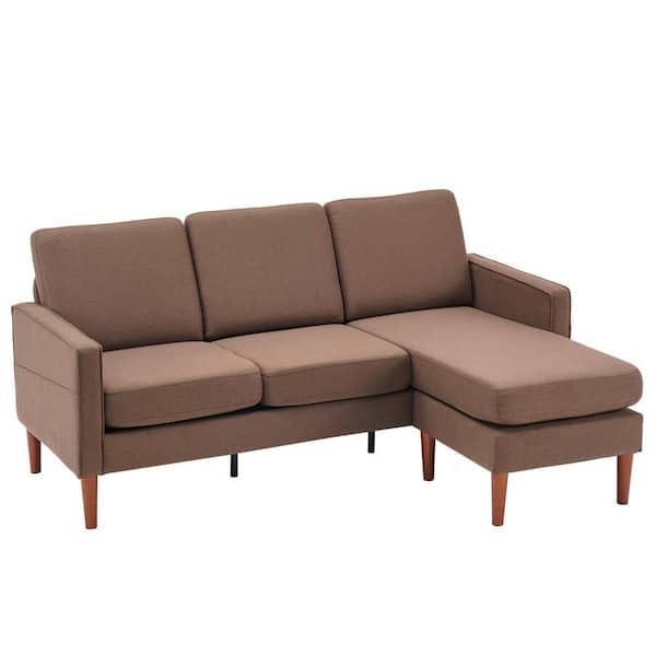 71 in. Square Arm 1-Piece Linen L-Shaped Sectional Sofa in Brown