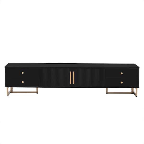 71 in. W x 15.7 in. D x 16 in. H Black Linen Cabinet TV Stand with 4 Drawers for Living Room