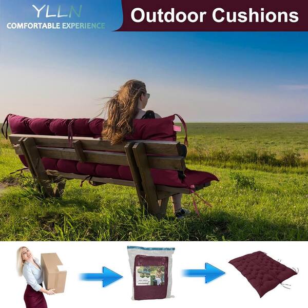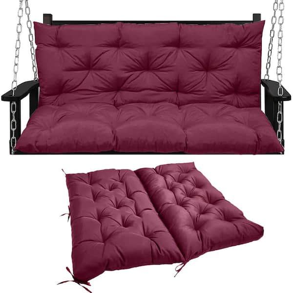 71 in. x 40 in. 3-Seater Replacement Outdoor Swing Cushions with Back Support, Waterproof Bench Cushion (Wine Red)