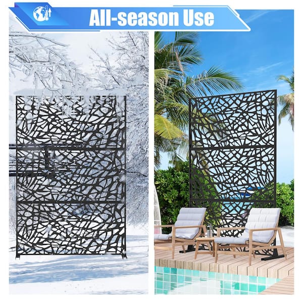 71 in. x 48 in. Black Metal Outdoor Privacy Screens Free Standing Plastic Panels for Balcony, Room Divider, Mesh Shape