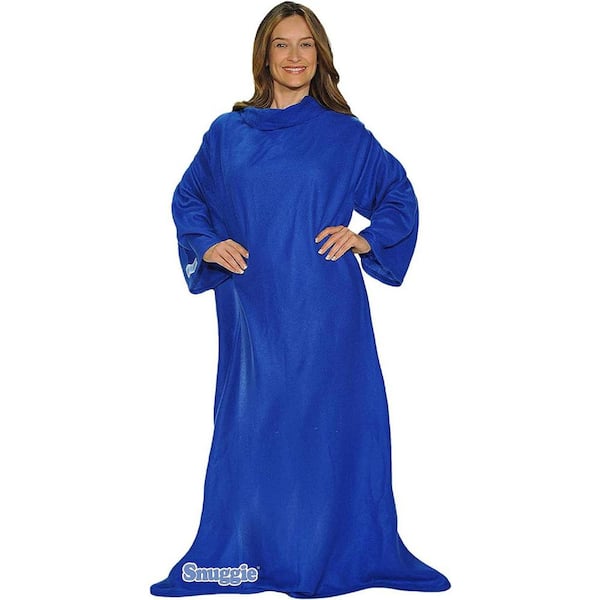 71 in. x 54 in. Blue Hands Free Wearable Fleece Throw Blanket