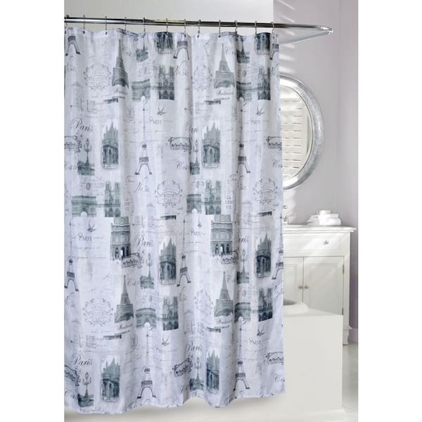 71 x 71 in. WHT/BLK/GRY Eiffel Polyester Shower Curtain