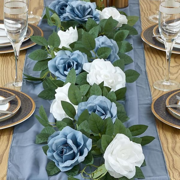 72 in. Dusty Blue Artificial Rose Garlands, Rose Vines Leaves Banners Hanging Floral Garland, 2-Piece