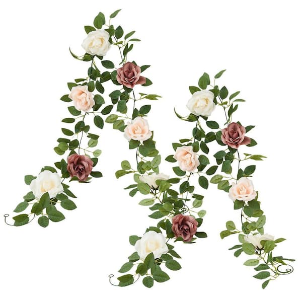 72 in. Red Artificial Rose Garlands Rose Vines Leaves, 2-Pack