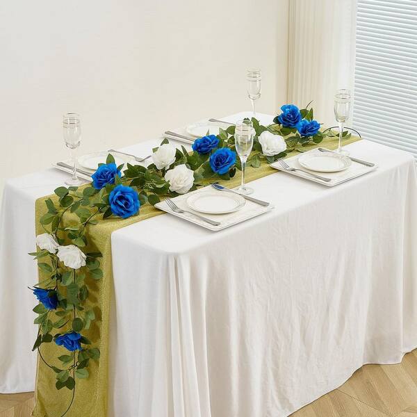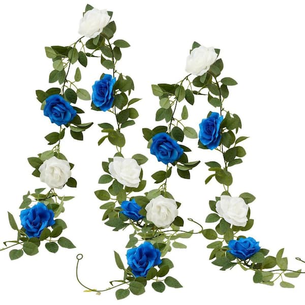 72 in. Royal Blue Artificial Rose Garlands Rose Vines Leaves, 2-Pack
