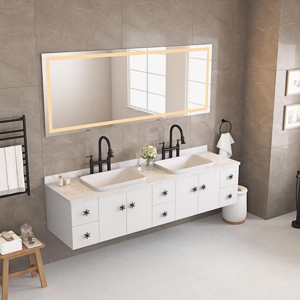 72 in. W x 30 in. H Rectangular Frameless Dimmable Anti-Fog Wall LED Bathroom Vanity Mirror in White