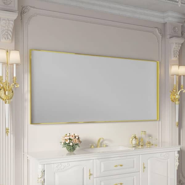 72 in. W. x 32 in. H Rectangular Aluminum Framed Wall Bathroom Vanity Mirror in Brushed Gold