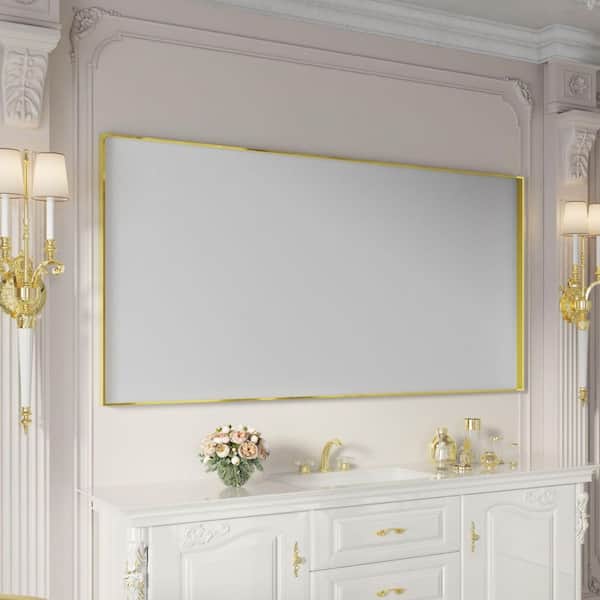 72 in. W x 36 in. H Rectangular Aluminum Framed Wall Bathroom Vanity Mirror in Brushed Gold