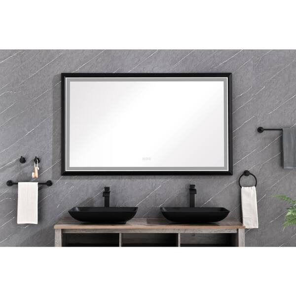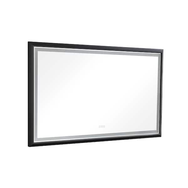 72 in. W x 36 in. H Rectangular Black Framed LED Mirror Anti-Fog Dimmable Wall Mount Bathroom Vanity Mirror