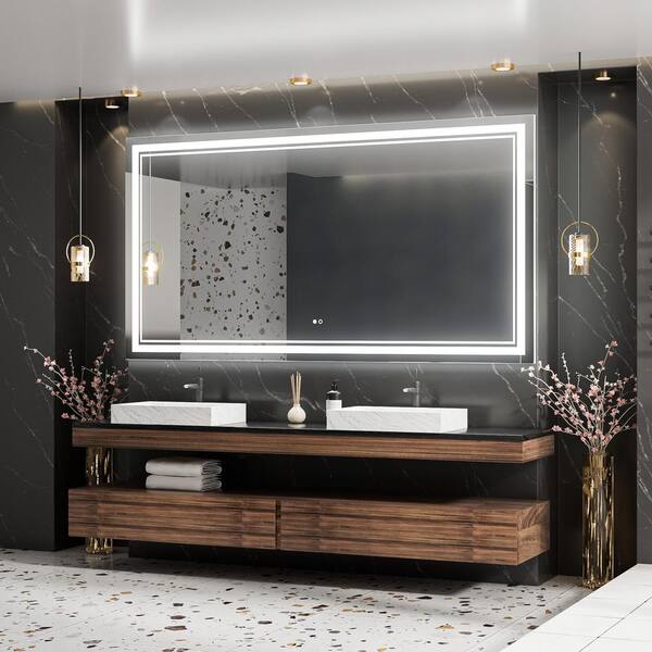 72 in. W x 36 in. H Rectangular Frameless Anti-Fog LED Wall Mount Bathroom Vanity Mirror Dimmable Super Bright