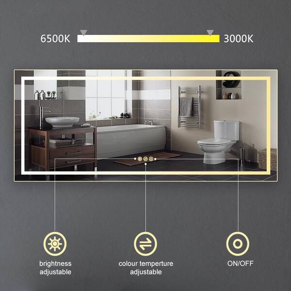 72 in. W x 36 in. H Rectangular Frameless Anti-Fog Wall Mounted LED Bathroom Vanity Mirror in Silver