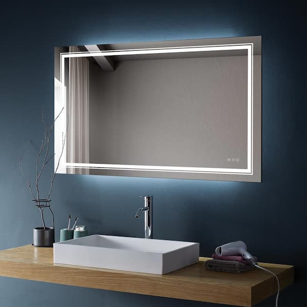 72- in. W x 36 in. H Rectangular Frameless LED Wall Bathroom Vanity Mirror in White