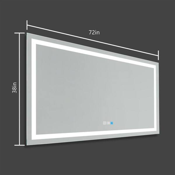 72 in. W x 38 in. H Rectangular Frameless Anti-Fog LED Wall Mount Decorative Bathroom Vanity Mirror