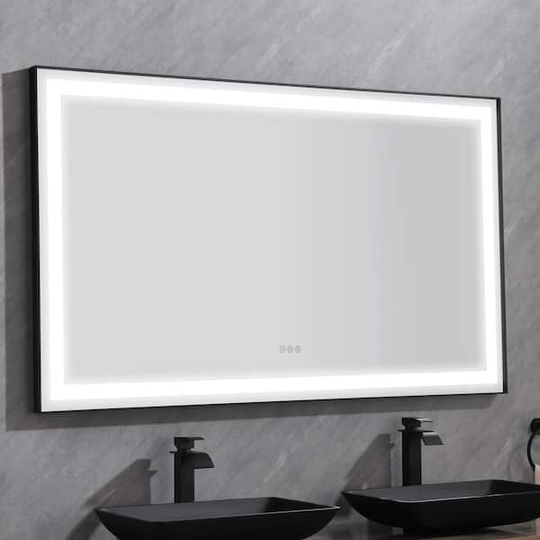 72 in. W x 48 in. H Large Rectangular Aluminium Framed Dimmable Anti-Fog Wall Bathroom Vanity Mirror in Black