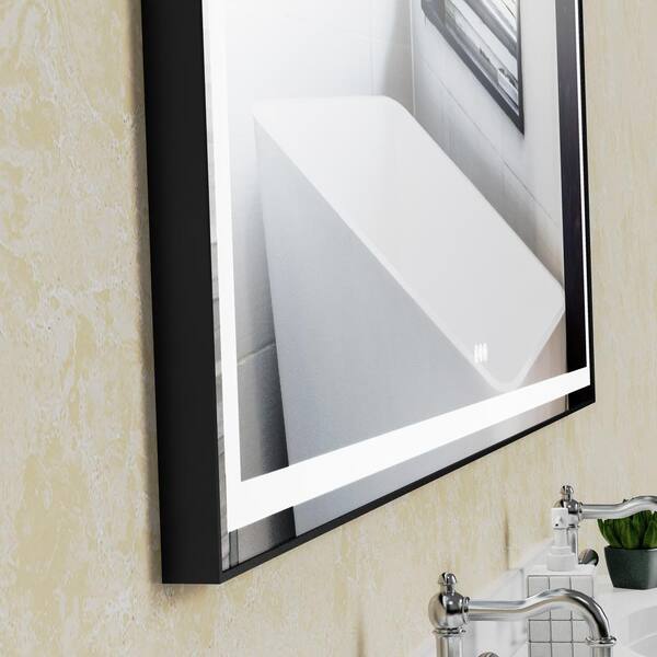 72 in. W x 48 in. H Rectangular Framed Dimmable LED Light Wall Bathroom Vanity Mirror in Black