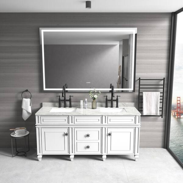 72 in. W x 48 in. H Rectangular Frameless LED Wall Single Bathroom Vanity Mirror for Bathroom