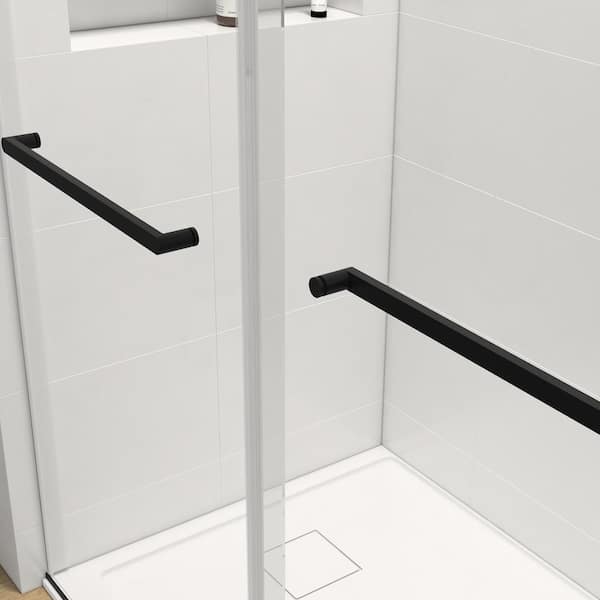 72 in. W x 76 in. Double Sliding Frameless Shower Door in Matte Black Without Buffer