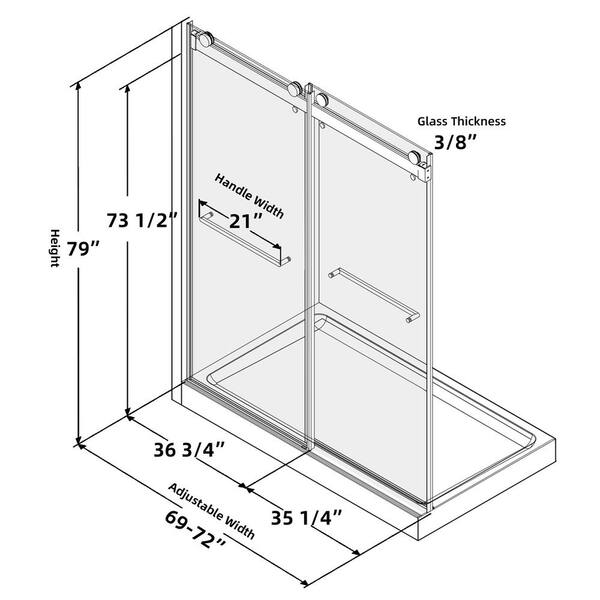 72 in. W x 79 in. H Double Sliding Frameless Shower Door in Matte Black with Clear Tempered Glass