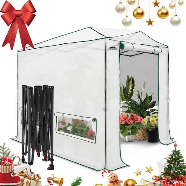 72 in. W x 96 in. D Portable Pop-Up Walk-In Greenhouse, Heavy-Duty Woven PE Canopy