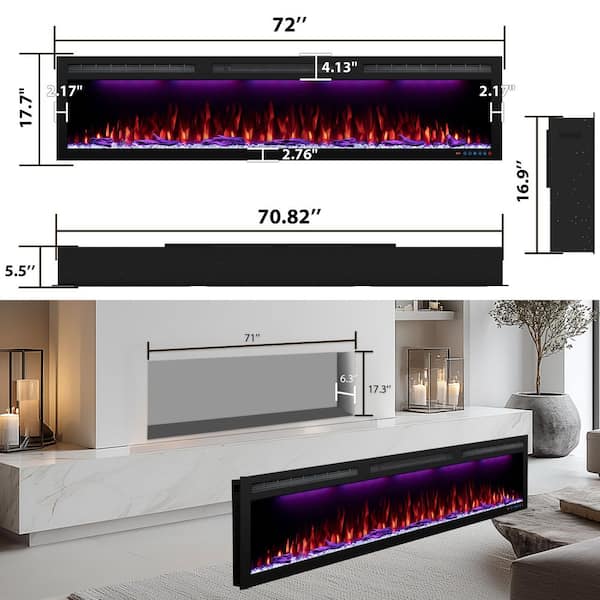 72 in. Wall-Mounted ElectricFireplace Insert, Alexa-EnabledFireplace Smart Control, TouchScreen, 1500W, Black
