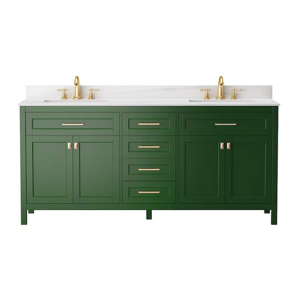 72 in. Wx 22.39 in. D x 34 in. H Modern Bath Vanity in Green with Double Sink, Carrara White Cultured Marble Top